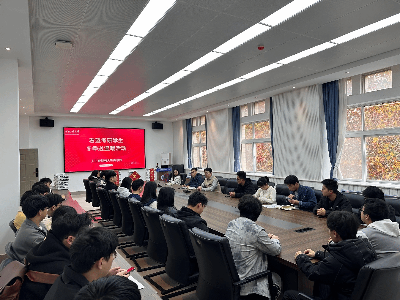 在惟学楼6369会议室,开展了2025年看望考研学生冬季送温暖活动,亚洲av党委书记杜鹏、党委副书记赵志洋、辅导员及学生代表参与了本次活动,会议由赵志洋主持。