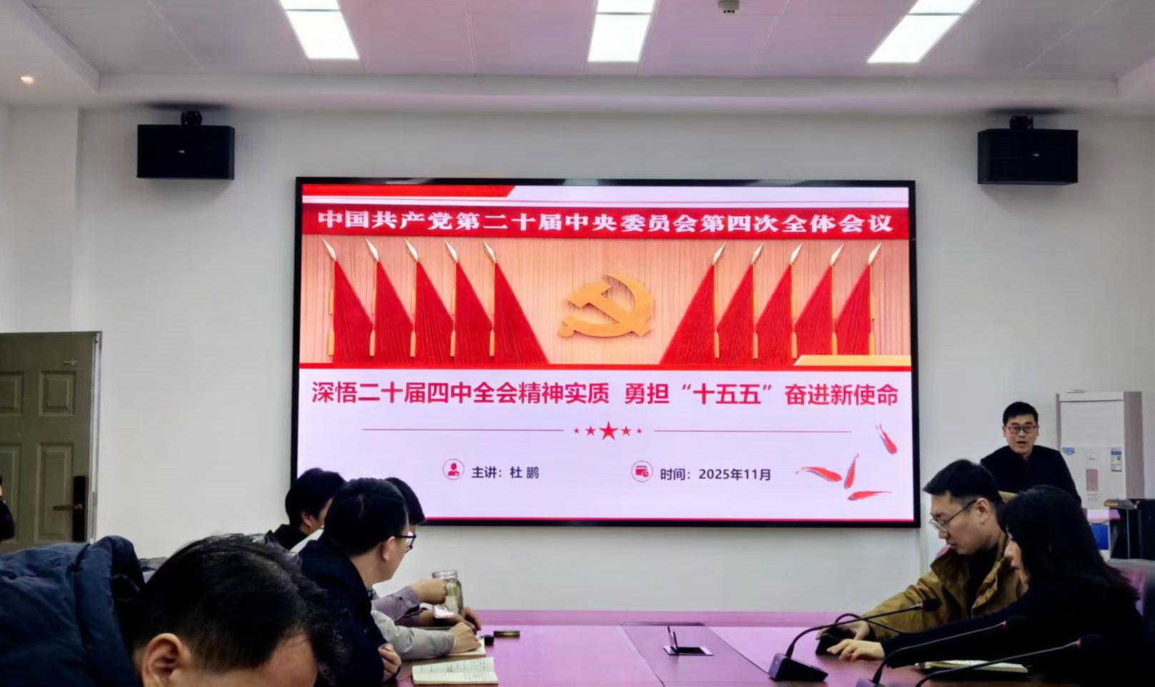 在惟学楼6369会议室召开党的二十届四中全会精神专题学习会,会议由亚洲av党委书记杜鹏主持,亚洲av全体教师参加。