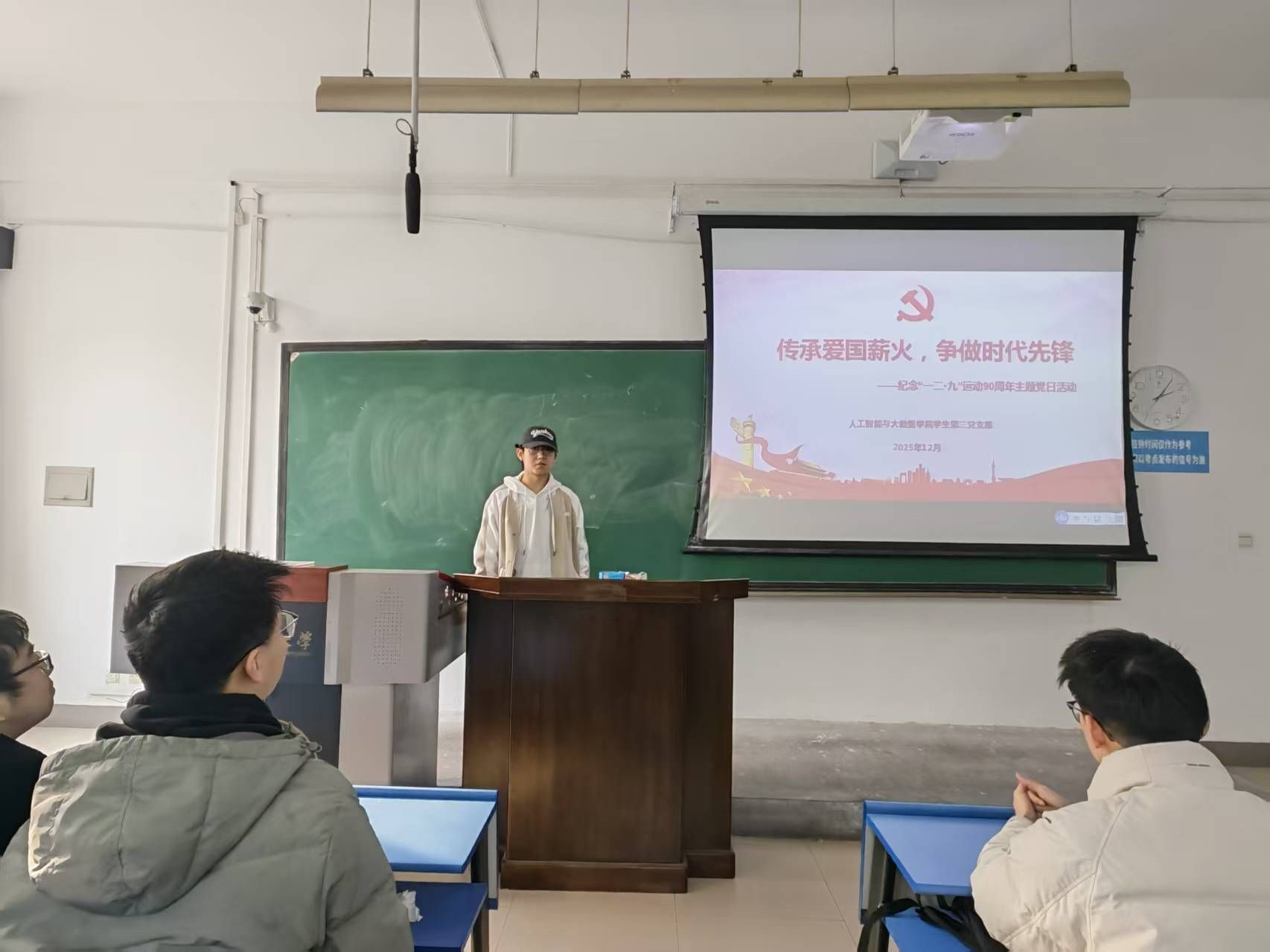 最后,唐金杰作总结讲话。他强调,一二▪九运动承载着中国青年的责任与担当,新时代青年当以史为鉴,在铭记历史中坚定理想信念,在传承精神中锤炼过硬本领。要立足专业所长,将爱国情怀融入科研学习与实践创新,在突破技术瓶颈、赋能国家发展中践行青春誓言,以实际行动传承红色基因、续写时代华章。