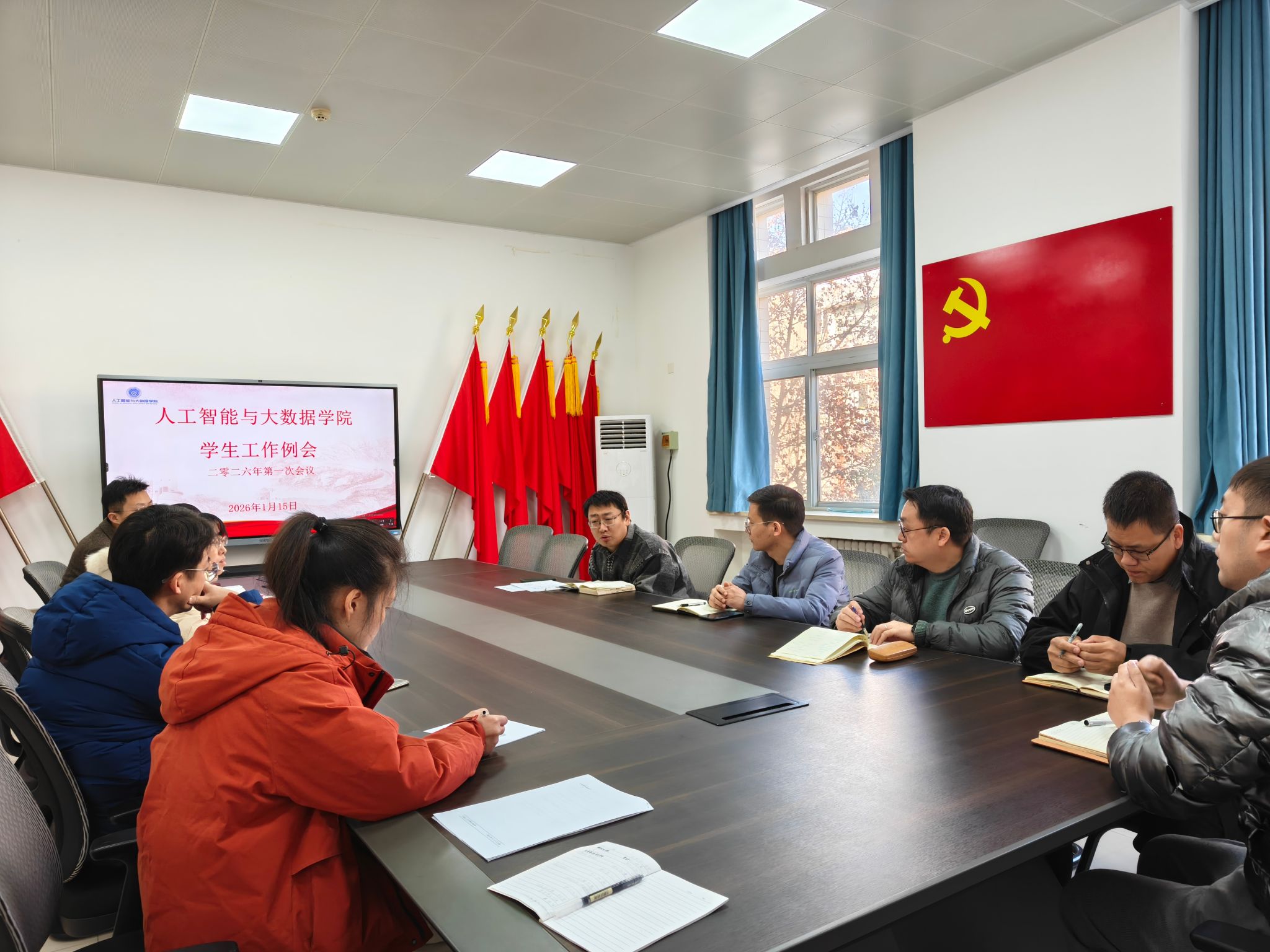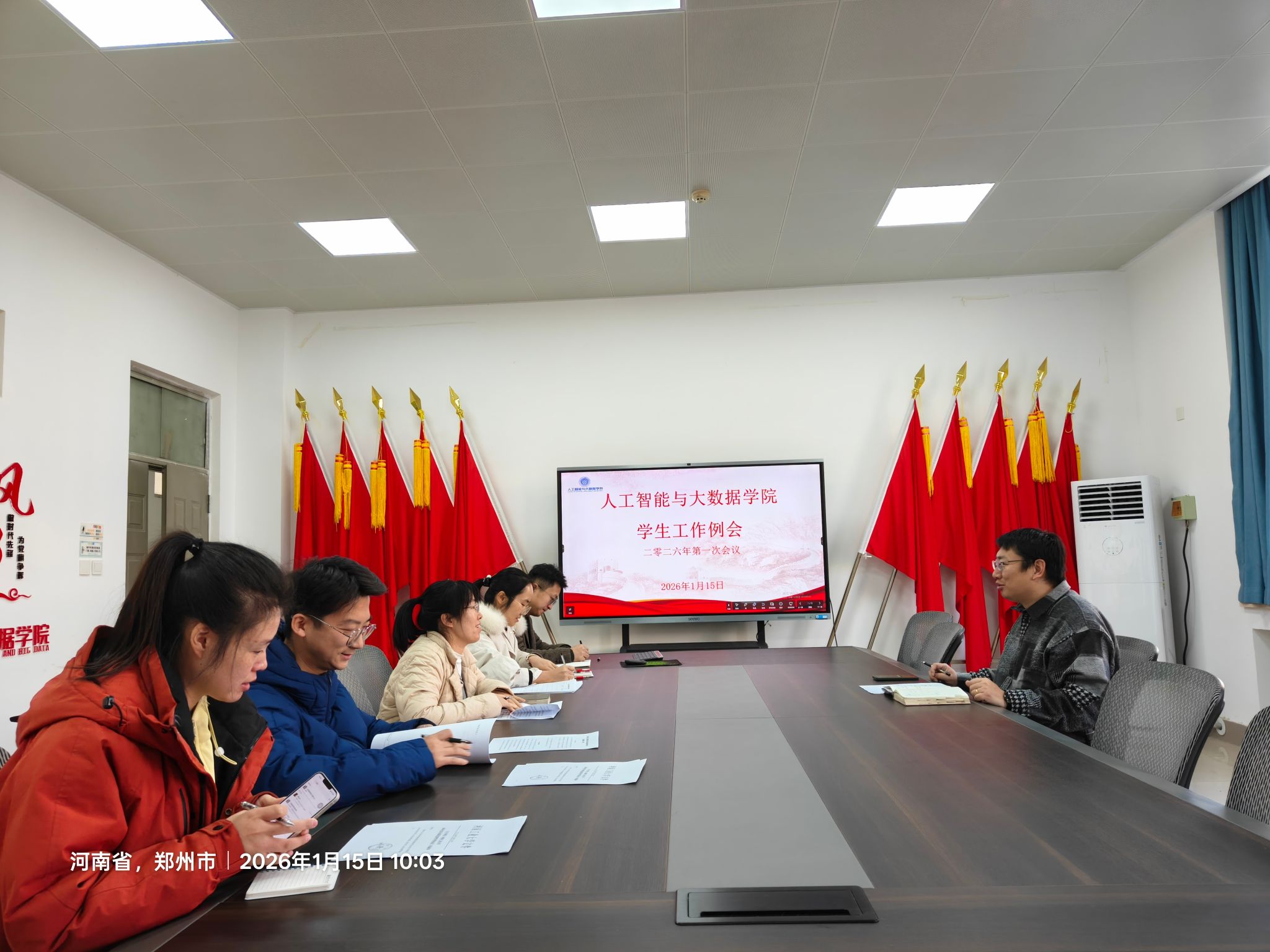 在惟学楼6371会议室召开了2026年第一次学生工作例会。亚洲av党委副书记赵志洋、全体辅导员参加本次会议。