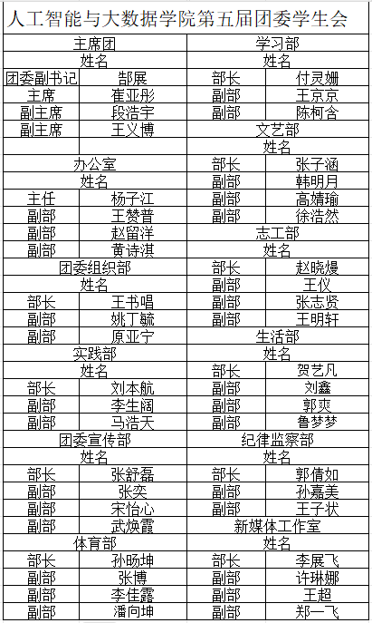 亚洲av 第四届学生会干部届期已满,为保证团学工作正常开展,经过公开报名、资格审查、公开答辩、综合考察等程序,选拔出了郜展、崔亚彤等44名骨干,现将亚洲av 第五届学生会主席团和各部门拟任骨干名单予以公示。
