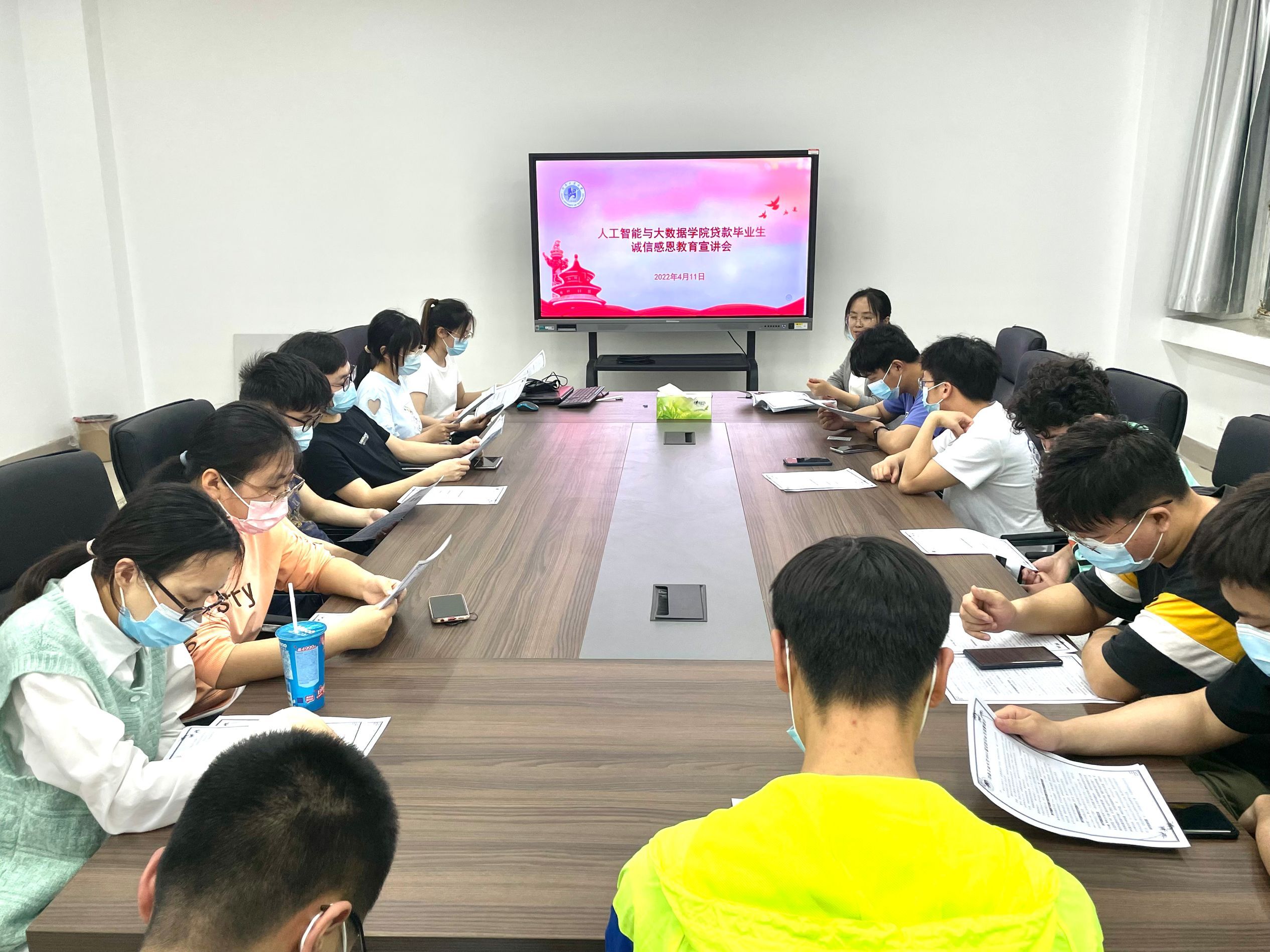 会议开始,说明了贷款系统线上审核及修改个人信息的流程,并强调了毕业确认工作流程的重要性,给大家发放了纸质版《亚洲av
